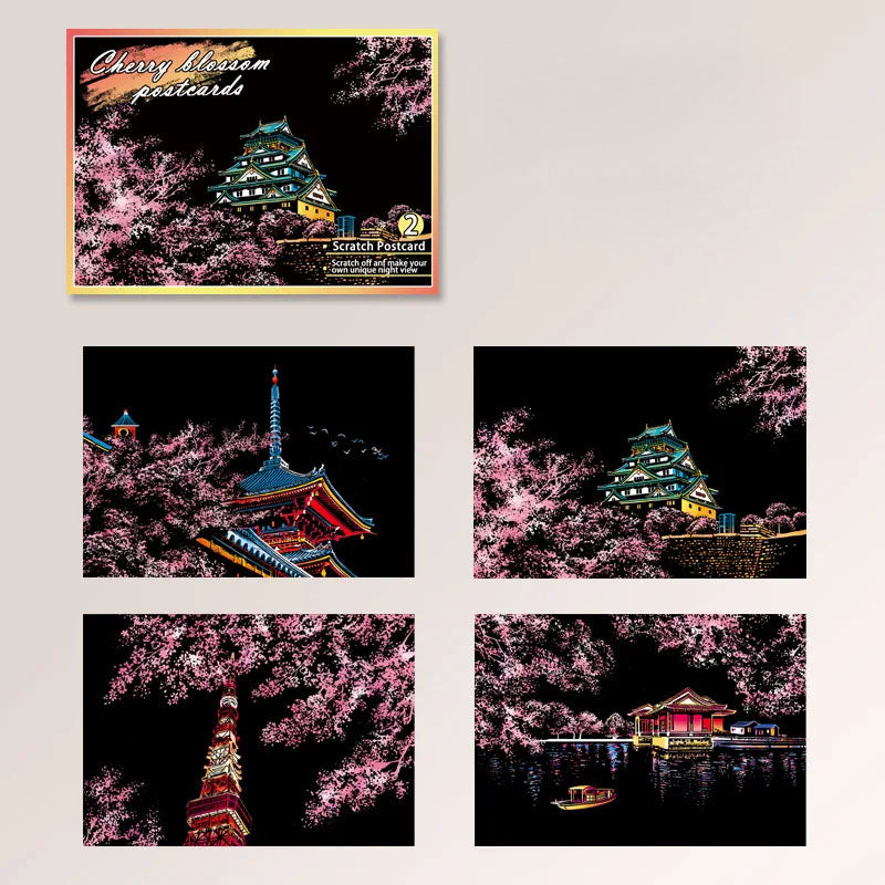 Unleash creativity and explore the beauty of world cities with this 4-piece DIY Night Scene Scratch Painting Set. Each scratchboard postcard (20×14cm/7.9×5.5in) reveals a vibrant city landscape hidden beneath a matte black surface—just use the included wooden pen to scratch away the top layer and watch stunning colors come to life. Made from premium coated art paper, these durable cards resist wear and produce brilliant artwork that lasts. Featuring four unique city designs, they’re not only fun but also educational, sparking interest in geography, history, and culture. Perfect as a birthday gift, travel keepsake, or room decor, these scratch paintings let kids and adults alike create dazzling artwork while making lasting memories.